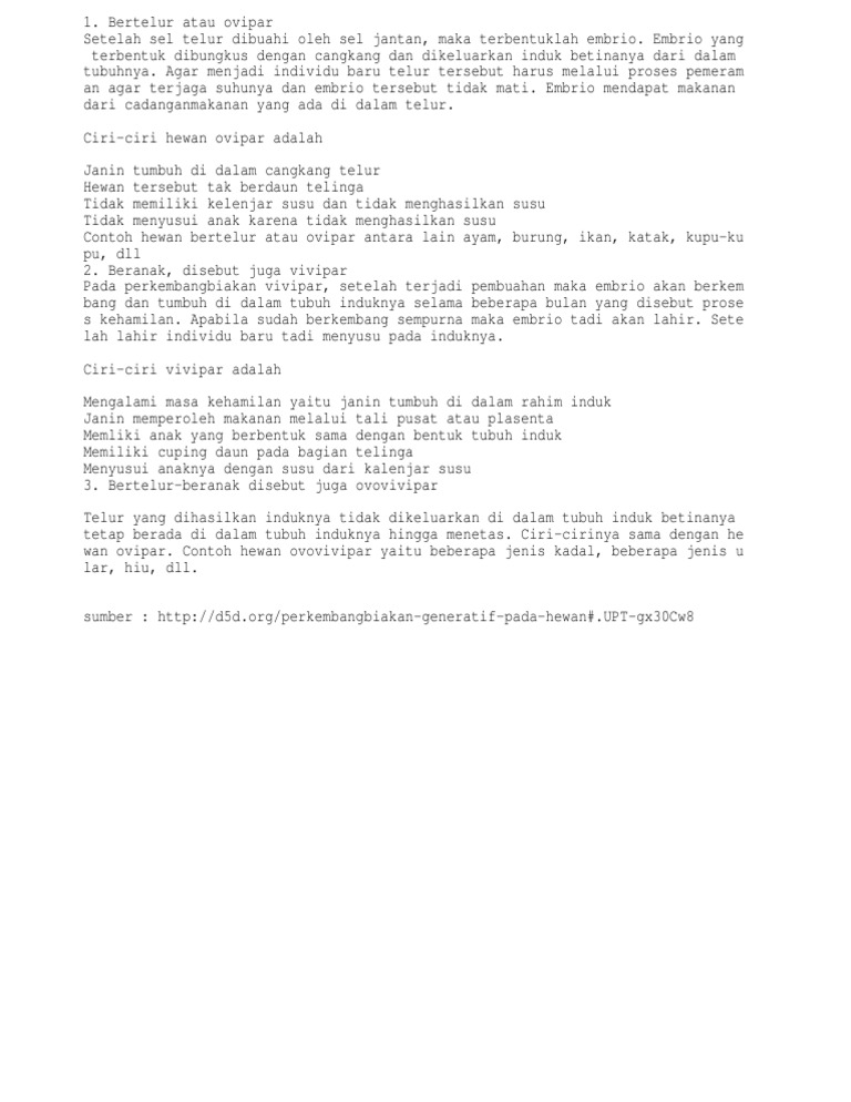 Sebutkan hewan yg berkembang biak dengan cara ovipar,vivipar,ovovivipar Dan ciri ciri - Brainly.co.id