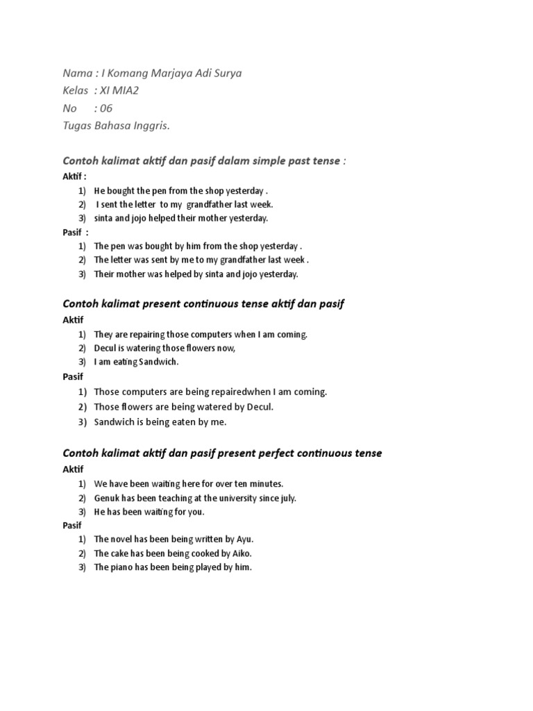 tentukan tenses dari masing-masing soal di atas kemudian buatkan kalimat aktif dan pasifnya dalam - Brainly.co.id