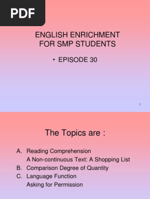 PPT) Reading-comprehension-comparison-degree-of-quantity-asking-for- permission (materi 11 april 2015) | Fatkhan Mubina - Academia.edu