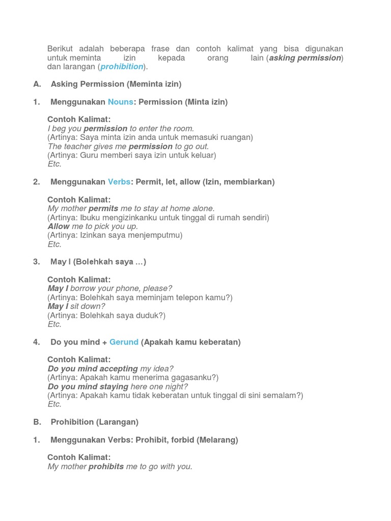 Meminta Izin Terjemahan Dalam Bahasa Inggris - Meminta Izin Dalam Sebuah Kalimat Dalam Bahasa Indonesia