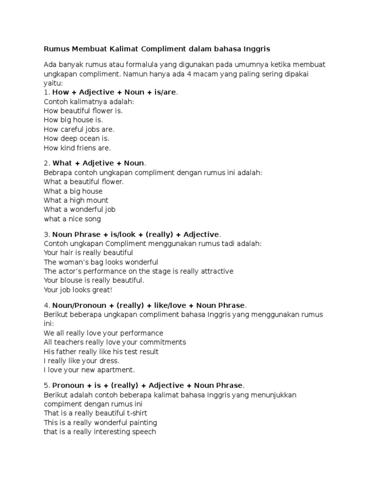 Compliment Terjemahan Dalam Bahasa Indonesia - Compliment Dalam Sebuah Kalimat Dalam Bahasa Inggris