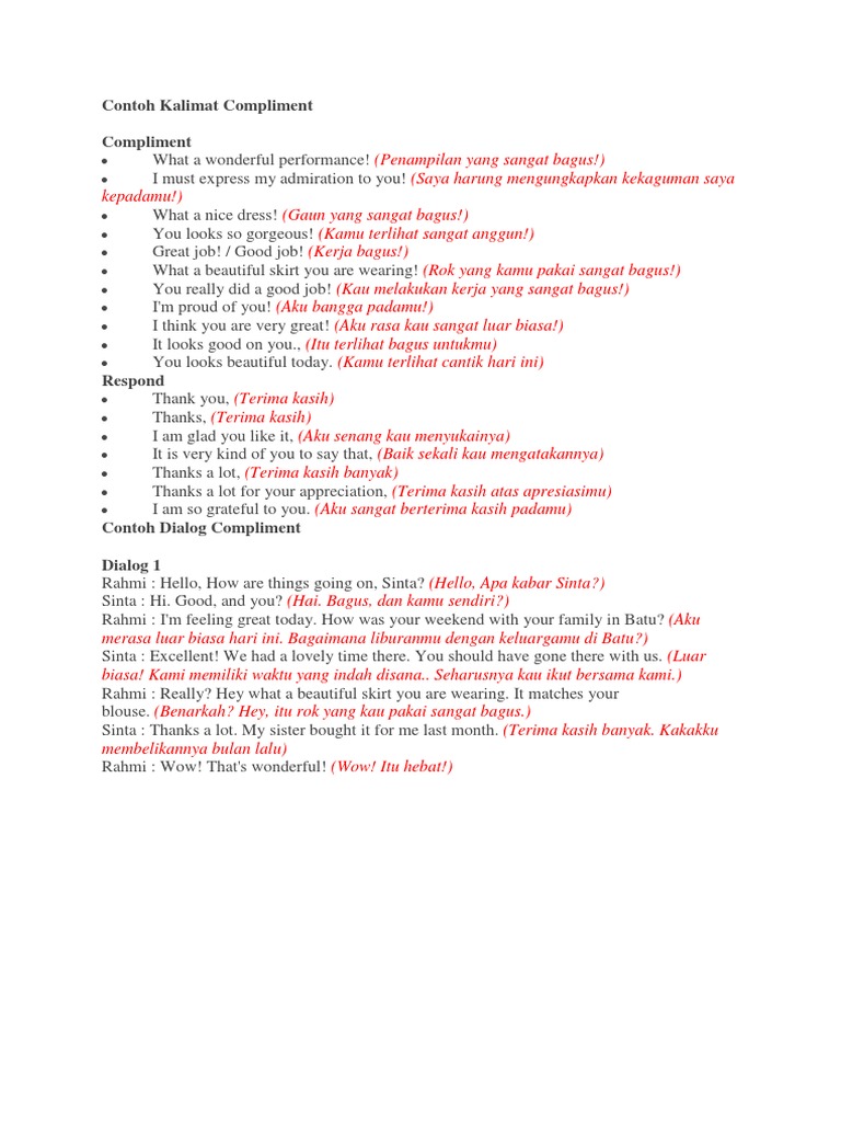 Thank You For The Compliment Terjemahan Dalam Bahasa Indonesia - Dalam Sebuah Kalimat Dalam Bahasa Inggris