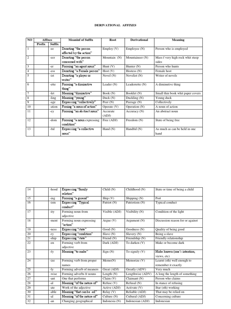 Berbagai Macam Derivation Dalam Bahasa Inggris Dan Contohnya