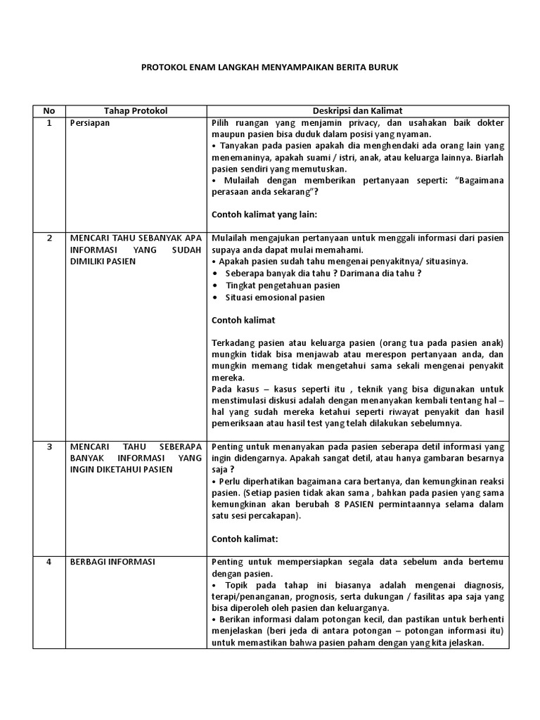 PROTOKOL ENAM LANGKAH MENYAMPAIKAN BERITA BURUK