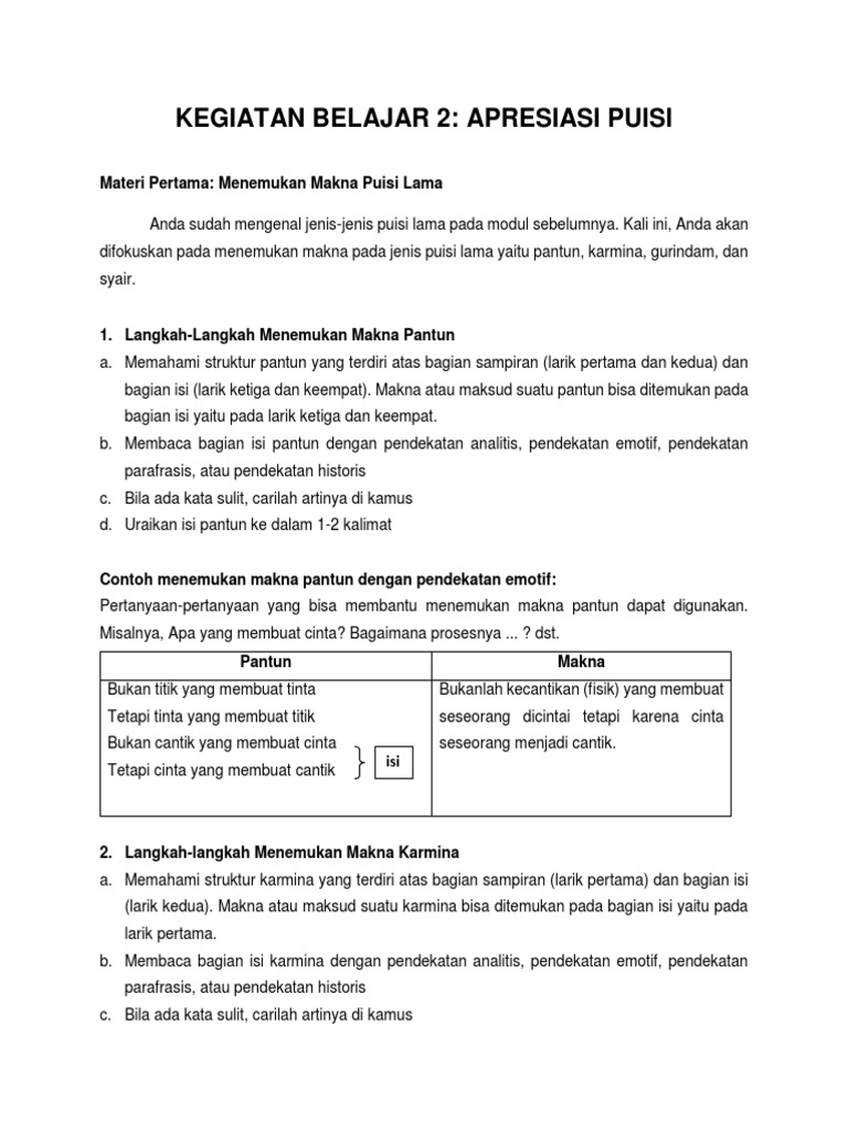 Kegiatan Belajar 2: Apresiasi Puisi: Materi Pertama: Menemukan Makna Puisi Lama