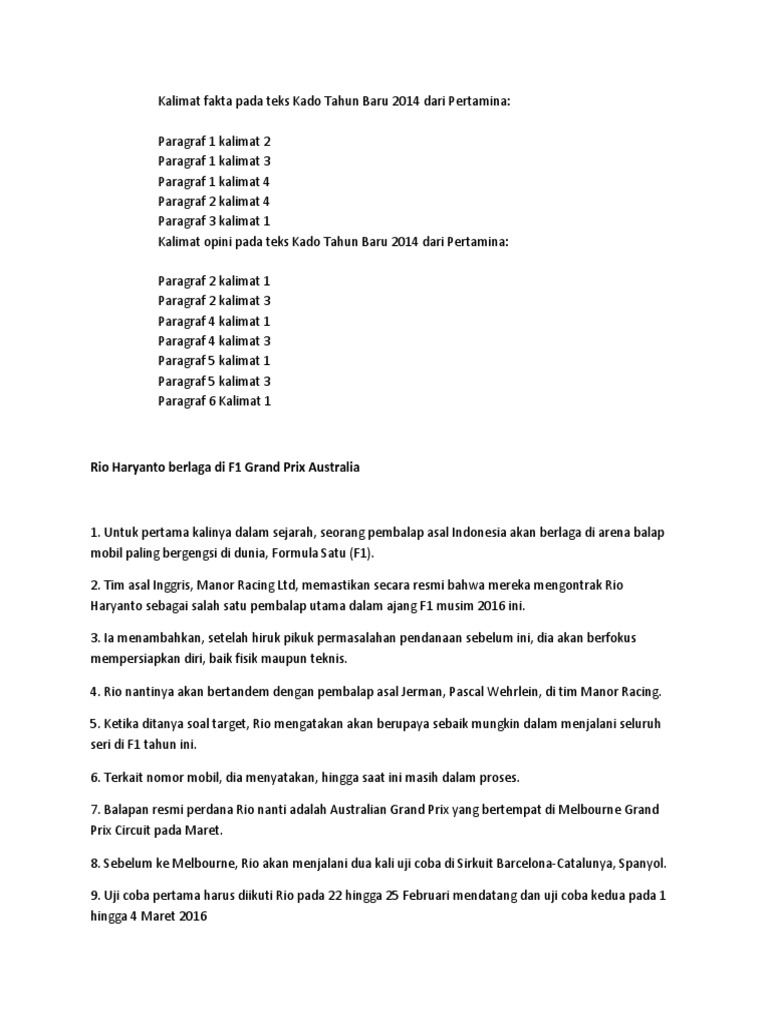 tentukan kalimat fakta dan opini dalam teks tersebut! - Brainly.co.id