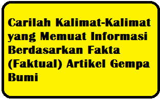 Carilah Kalimat-Kalimat yang Memuat Informasi Berdasarkan Fakta (Faktual) Artikel Gempa Bumi - Operator Sekolah
