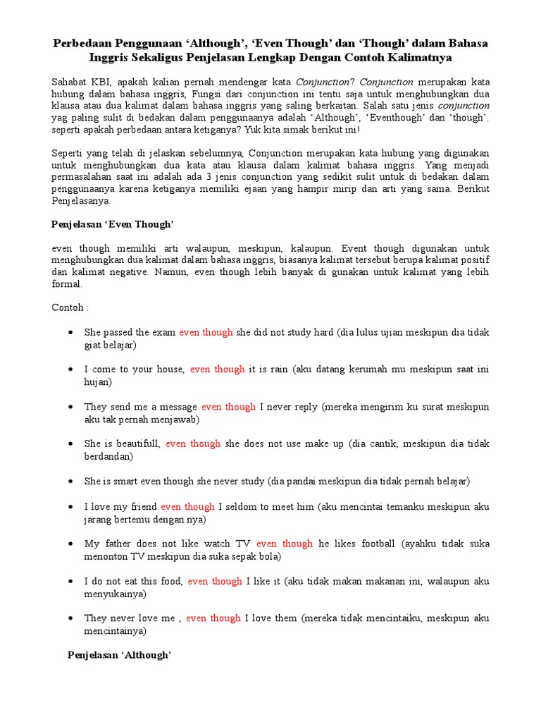 Perbedaan Penggunaan Although
