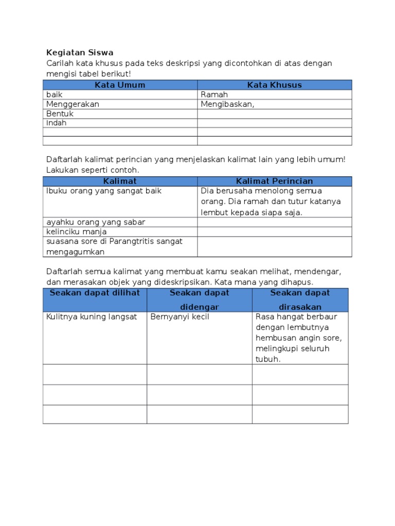 Mendaftar Ciri Penggunaan Bahasa Pada Teks Deskripsi Kata Umum Dan Kata Khusus - Berbagai Teks Penting