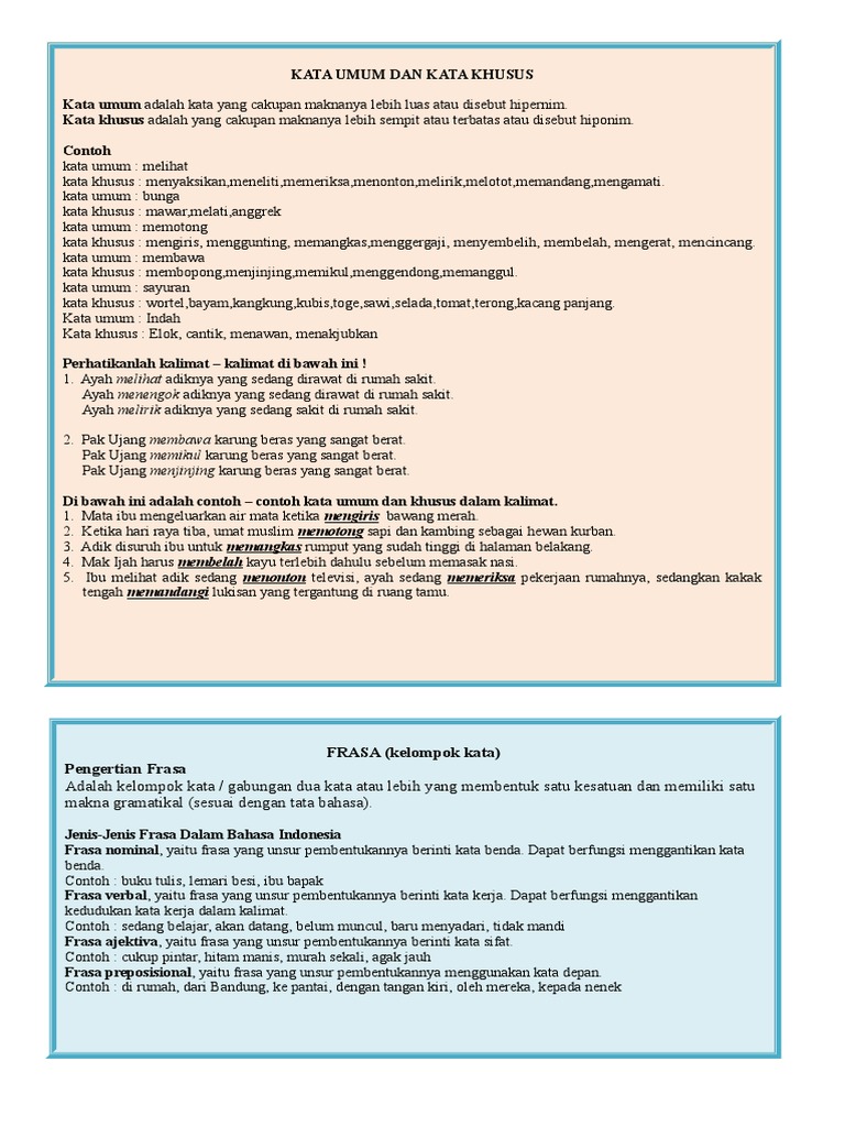 Contoh Kalimat Kata Umum Dan Kata Khusus