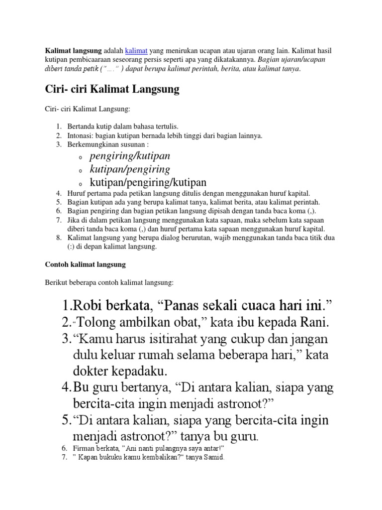 DOC) Pengertian dan Contoh Kalimat Langsung dan Tidak L | Mamaz Gie - Academia.edu