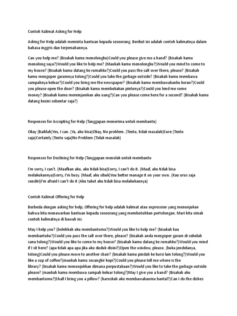 Dialog Atau Percakapan Bahasa Inggris Meminta Dan Menawarkan Pertolongan - Cara Mudah Belajar Bahasa Inggris - [PDF Document]