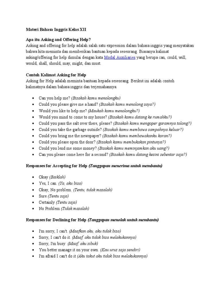 Materi Bahasa Inggris ASKING FOR HELP and OFFERING FOR HELP - GURU.OR.ID
