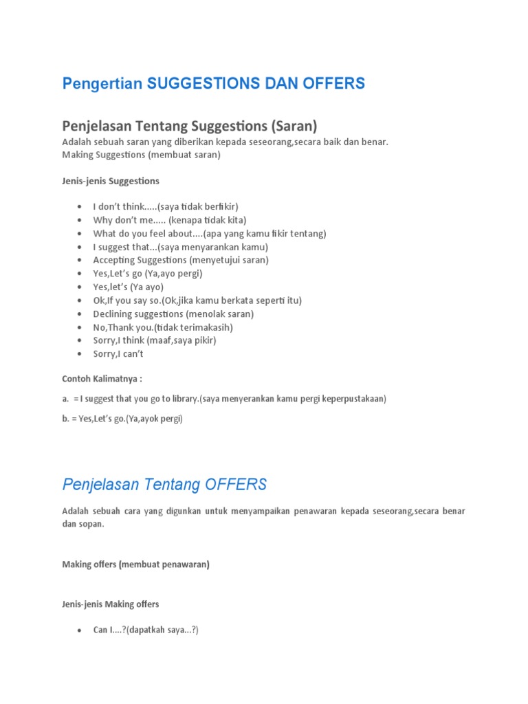 Pengertian Suggestions Dan Offers