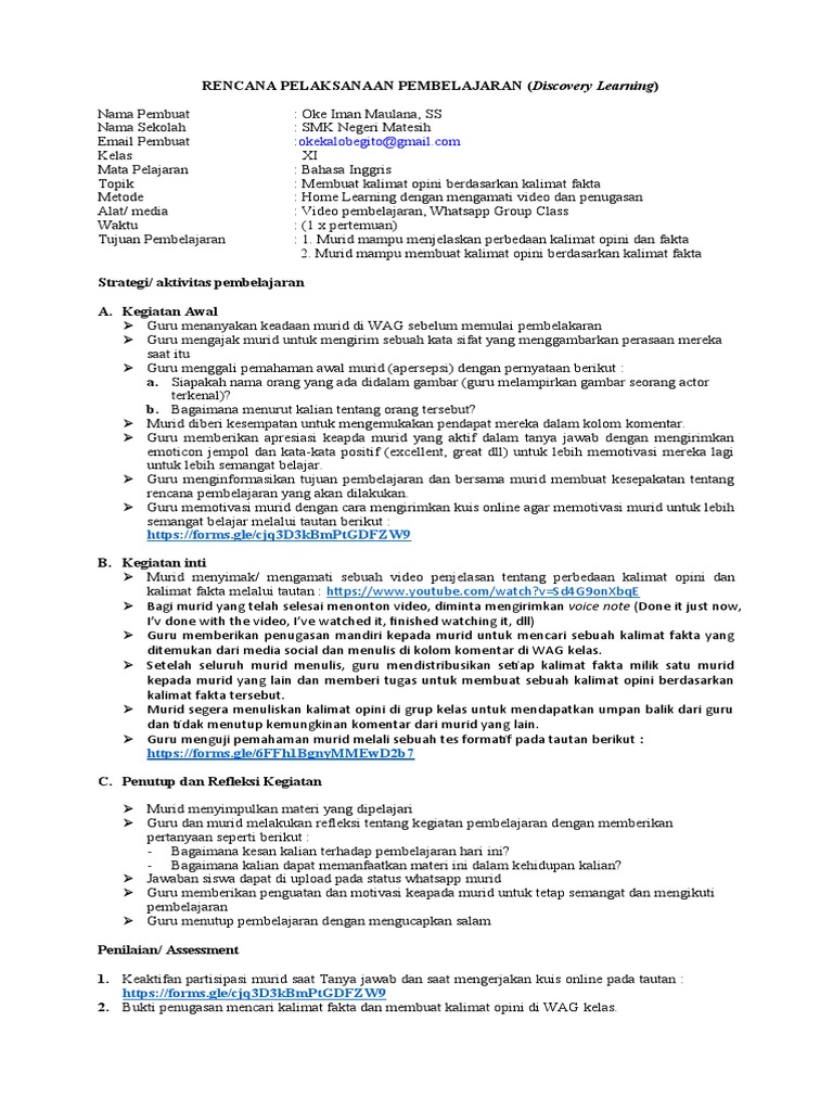 RPP 1 Lembar Bahasa Inggris Kelas XI SMK/MAK Tahun 2020/2021 - Sinau-thewe.com