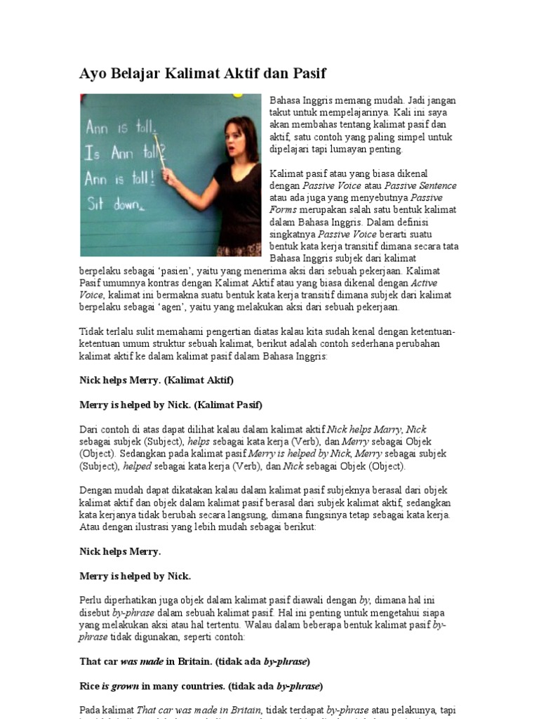 Pengertian Passive Voice (Kalimat Pasif) dan Active Voice (Kalimat Aktif) : Miss Nana