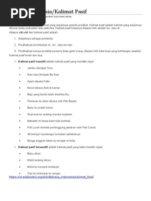 kumpulan materi pelajaran dan contoh soal 3: 20 Teladan Kalimat Pasif Transitif Dan Intransitif Beserta Pengertiannya