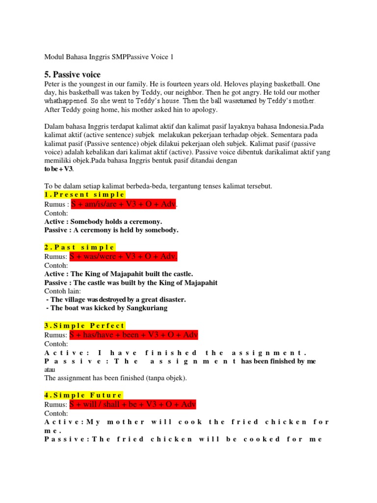 Modul Bahasa Inggris SMPPassive Voice 1 | Style (Fiction) | Linguistics