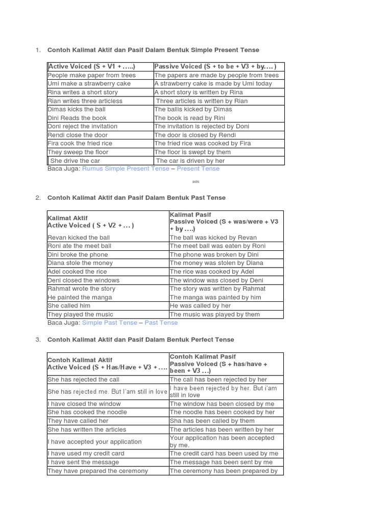 Contoh Kalimat Present Tense Aktif Dan Pasif