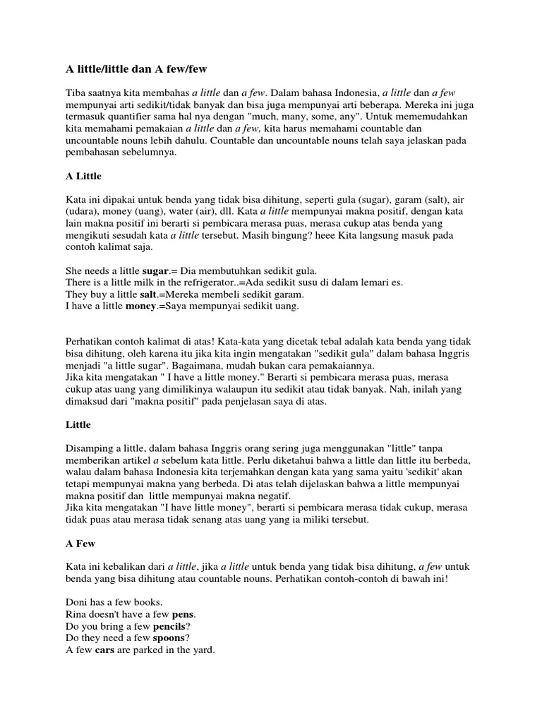 Aturan Dan Cara Penggunaan Quantifiers A Few, Few, A Little, Little - Dimensi Bahasa Inggris