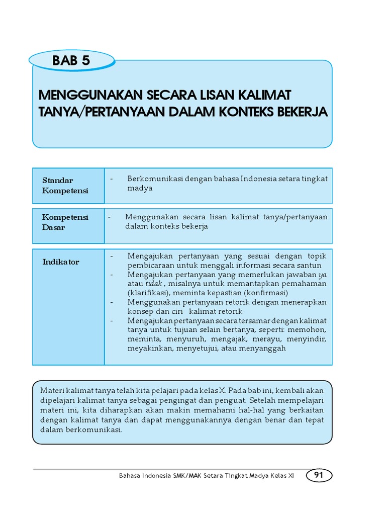 Bab 5 Menggunakan Secara Lisan Kalimat Tanya/Pertanyaan Dalam Konteks Bekerja