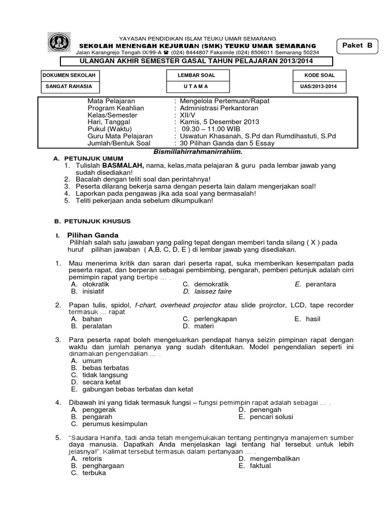 SOAL UAS Mengelola Rapat B.docx