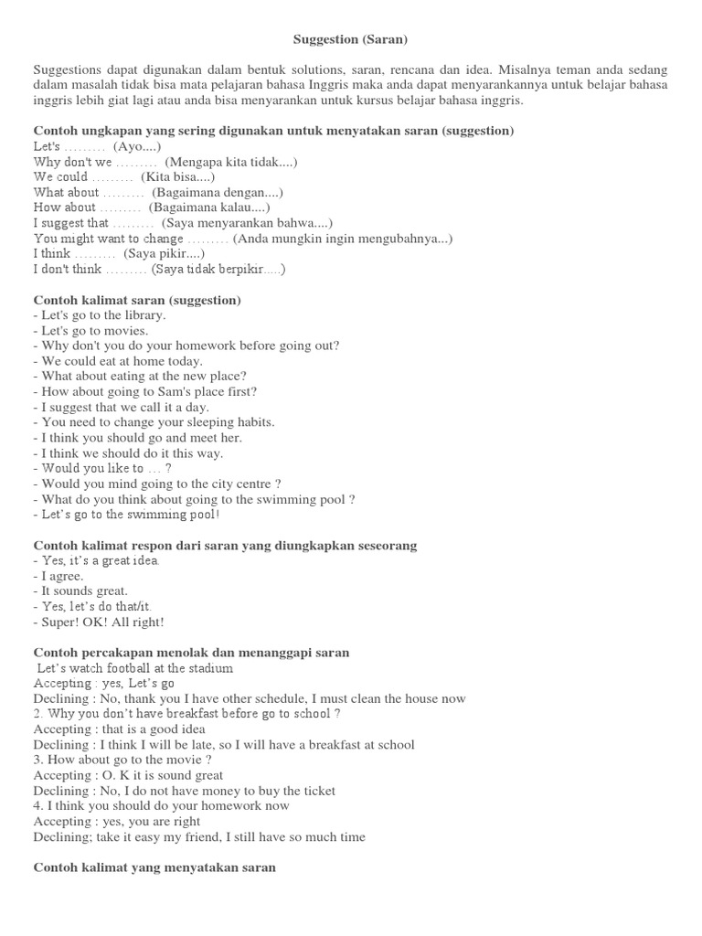 Contoh Kalimat suggestion lengkap beserta contoh contohnya