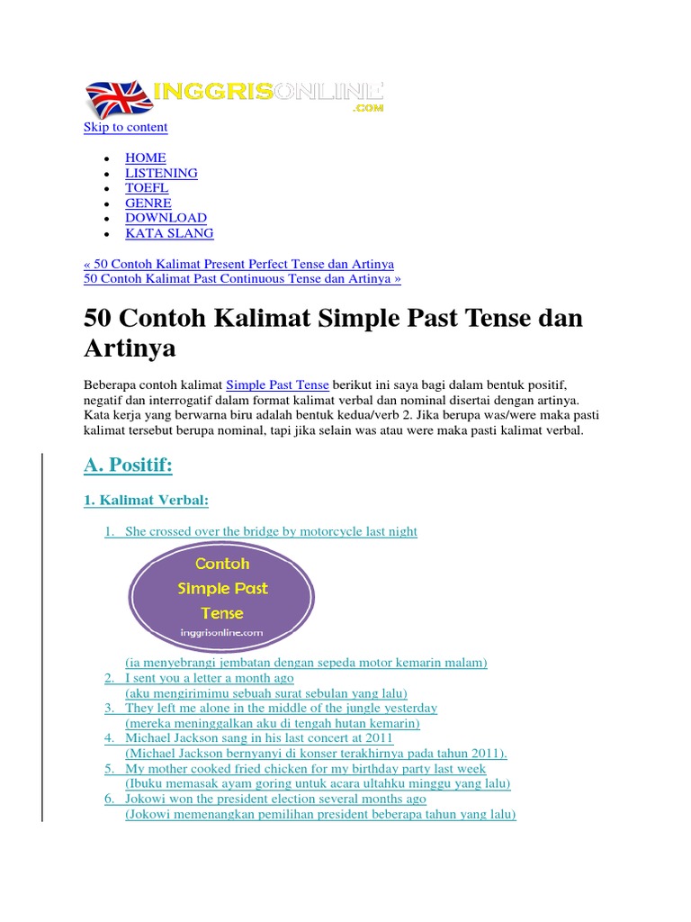 Gita Intan Putri Sentence No Comments: 50 Contoh Kalimat Simple Past Tense Dalam Bahasa Inggris Dan Artinya