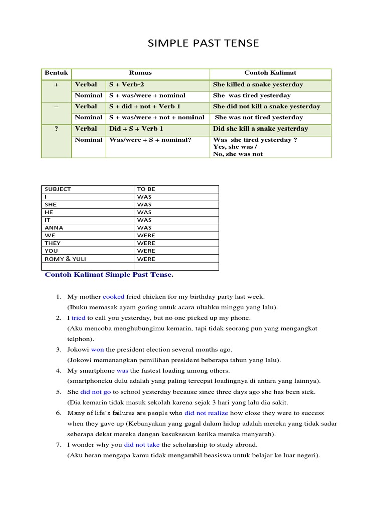 DOC) Rumus kalimat Simple Past Tense | Chelsea Abigail - Academia.edu