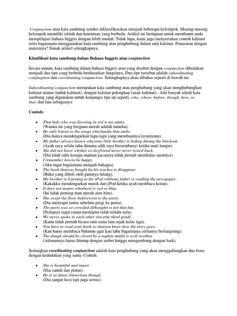 Contoh Kata Conjunction | Materi Pelajaran 4