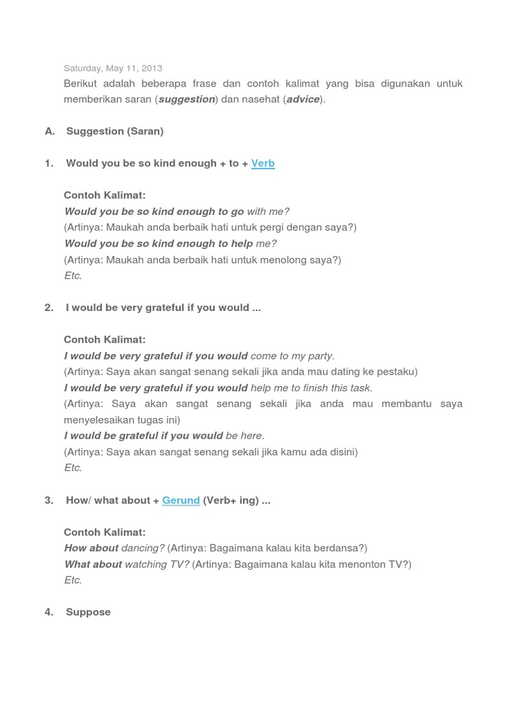 Contoh Kalimat Giving Suggestion Beserta Artinya - Maulanikma.com