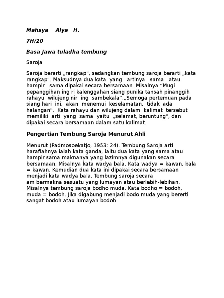 tembung sanalika basa jawa lengkap - Sandekala.com
