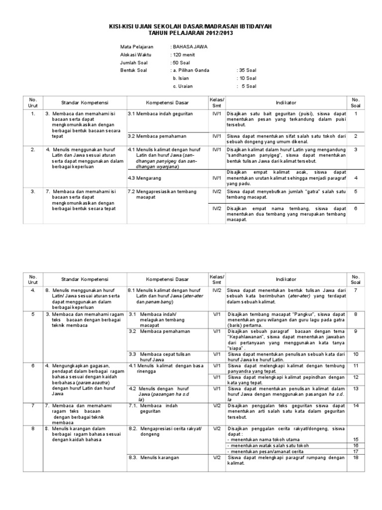 Kisi Kisi Us Bahasa Jawa 13 Revisi
