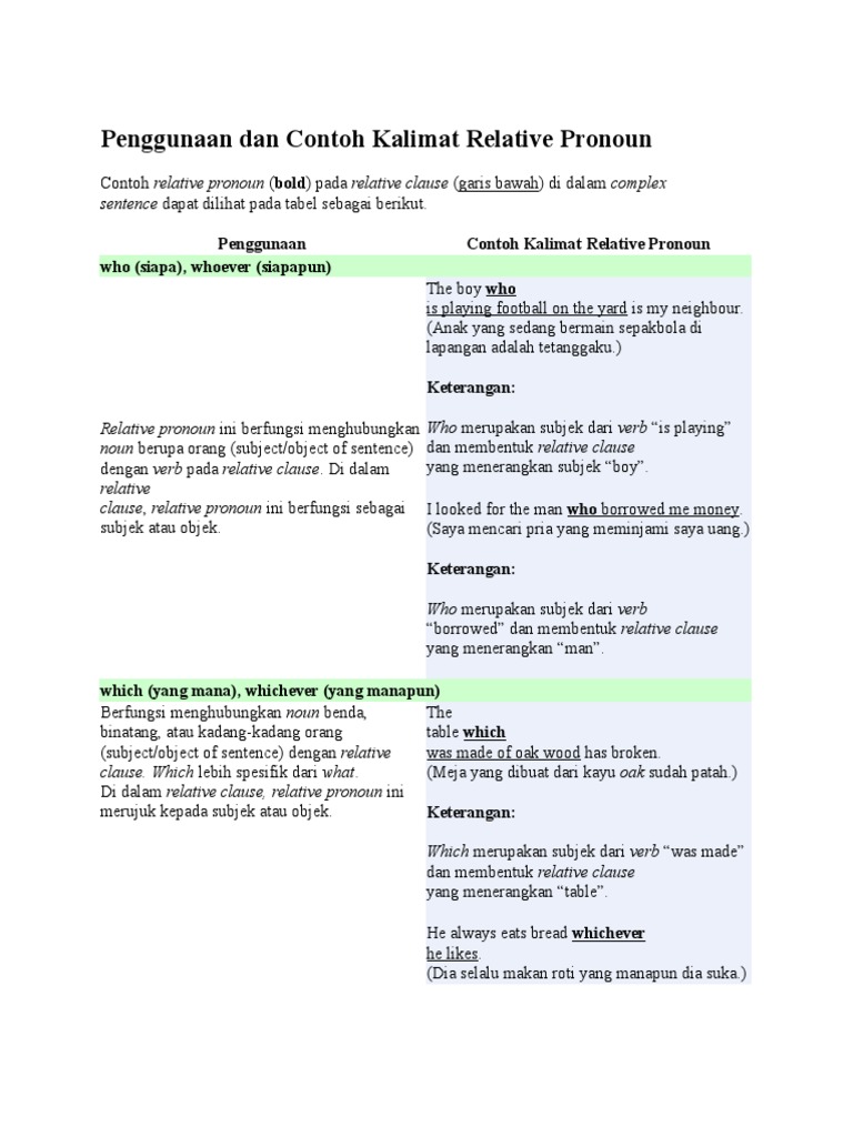 Penggunaan Dan Contoh Kalimat Relative Pronoun