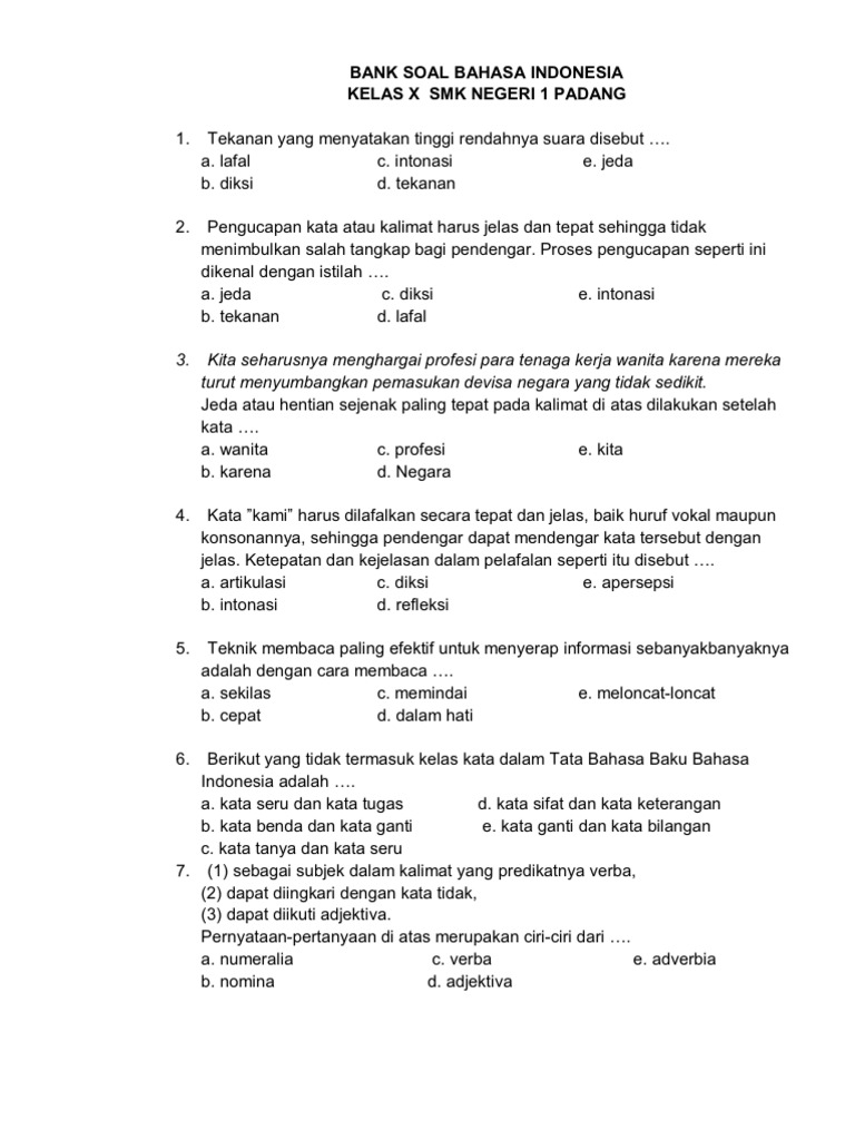 soal bahasa Indonesia : Menyimak dan memberikan penilaian pembacaan teks pidato