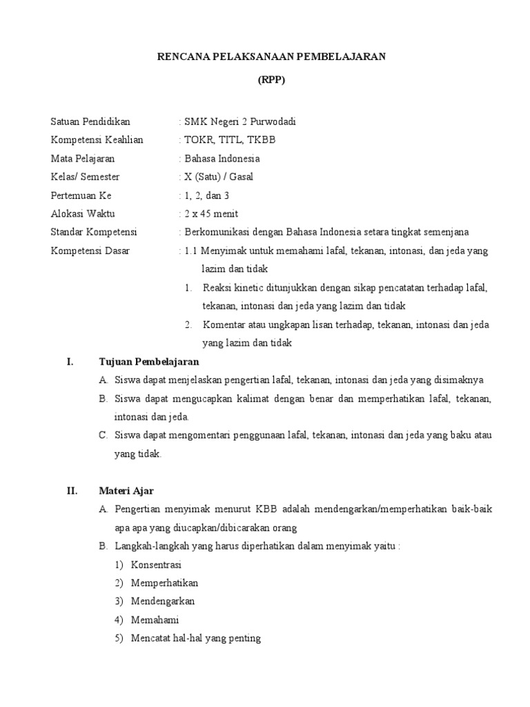 DOC) Rpp bahasa indonesia berkarakter smasmk kelas x | Yanda Aline - Academia.edu