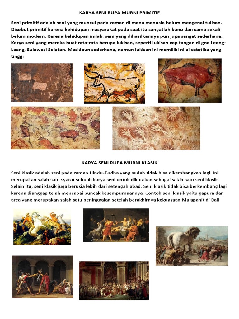 Perkembangan Kesenian mulai dari Seni Primitif, Seni Klasik, Seni Tradisional, Seni Modern, sampai Seni Kontemporer beserta