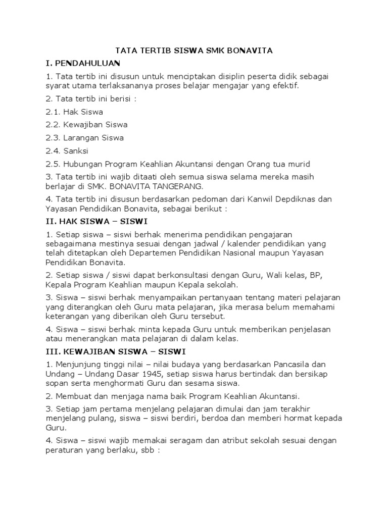 Contoh Tata Tertib dan Sanksi Bagi Siswa di Sekolah - Trigonal Media