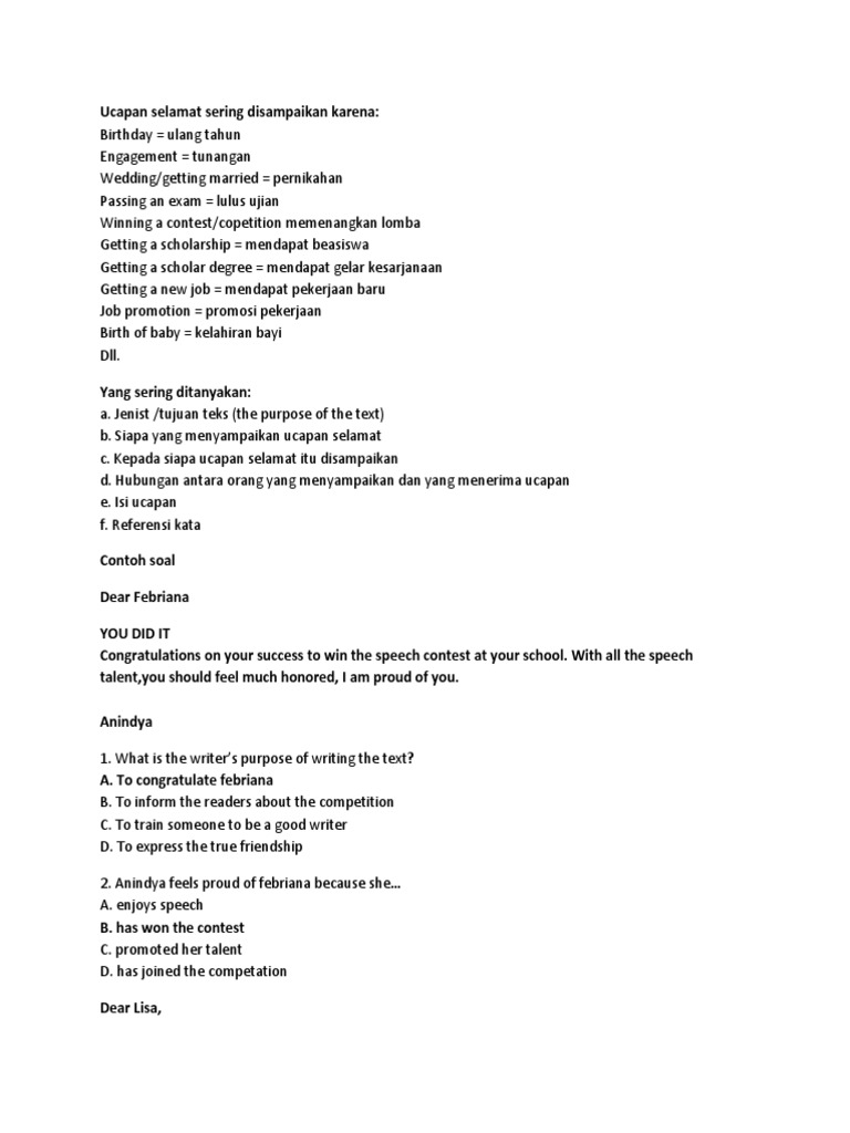 Latihan Soal Ucapan Congratulations Bahasa Inggris SMP - Ahzaa.Net