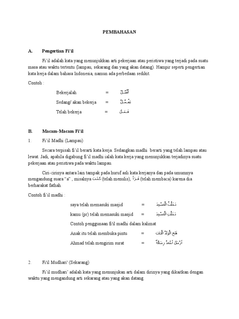 Fi’il () Kata Kerja Bahasa Arab dan Macam - Macamnya
