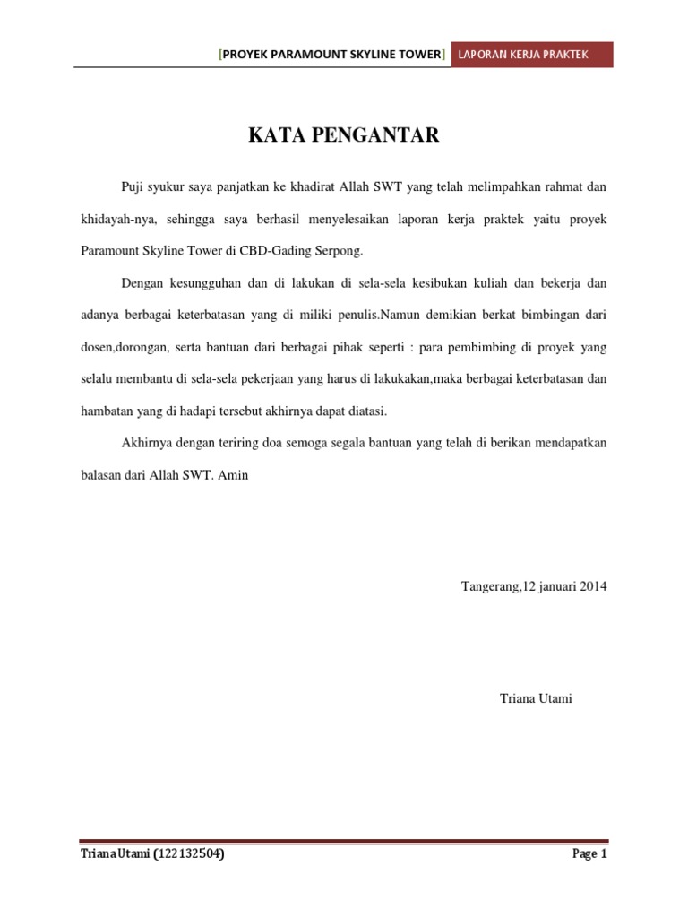 R: Contoh Kata Pengantar laporan kerja lapangan (PKL)