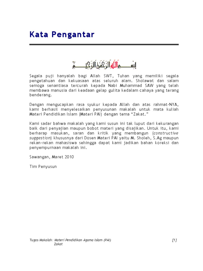 Contoh Kata Pengantar Makalah Tentang Zakat - Rasmi B