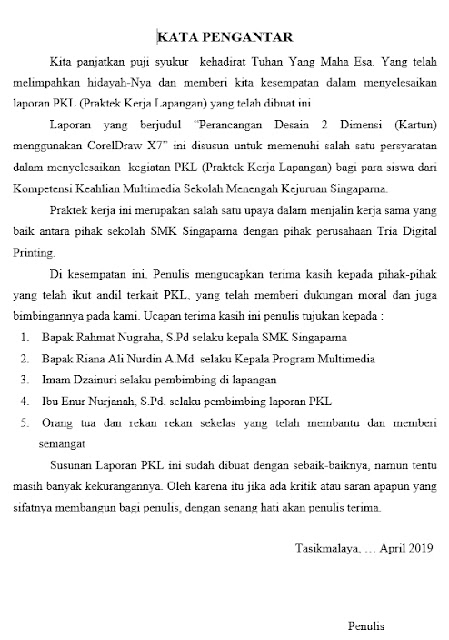 Contoh Kata Pengantar untuk Laporan PKL/PRAKERIN