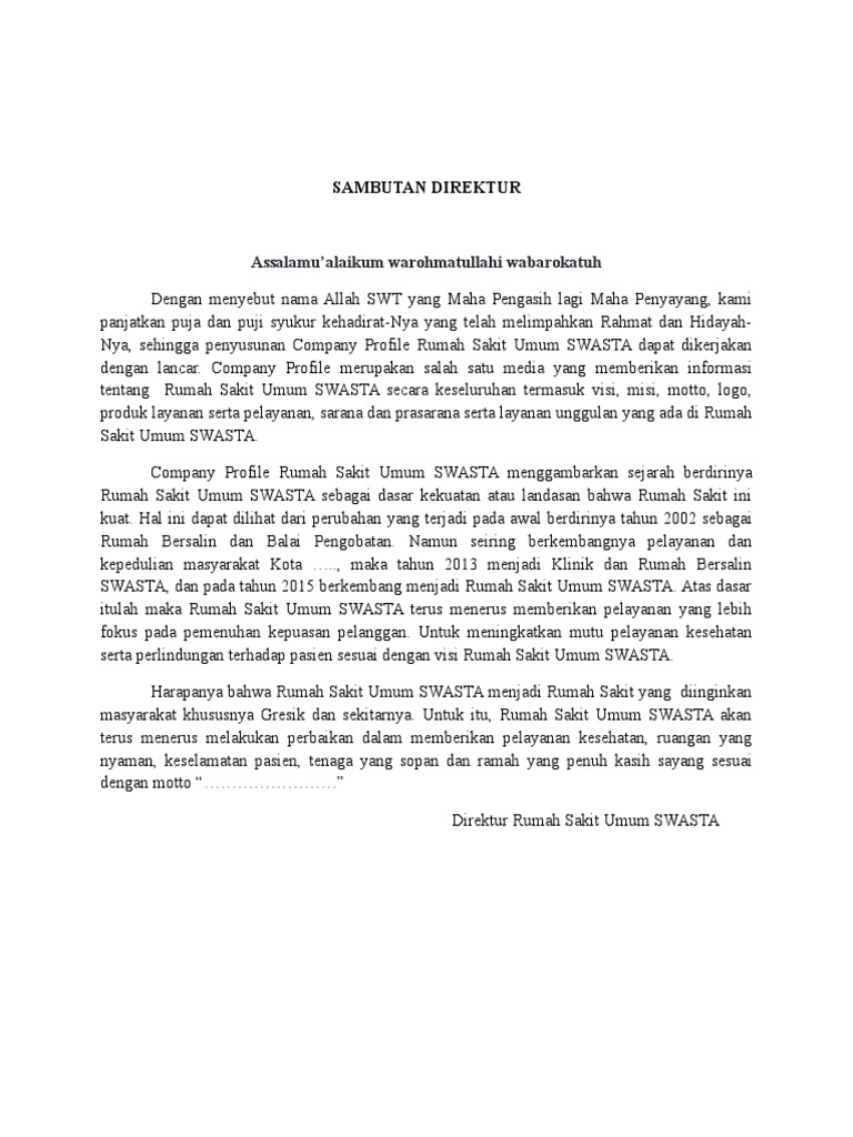 Kata Sambutan - RSU HGA