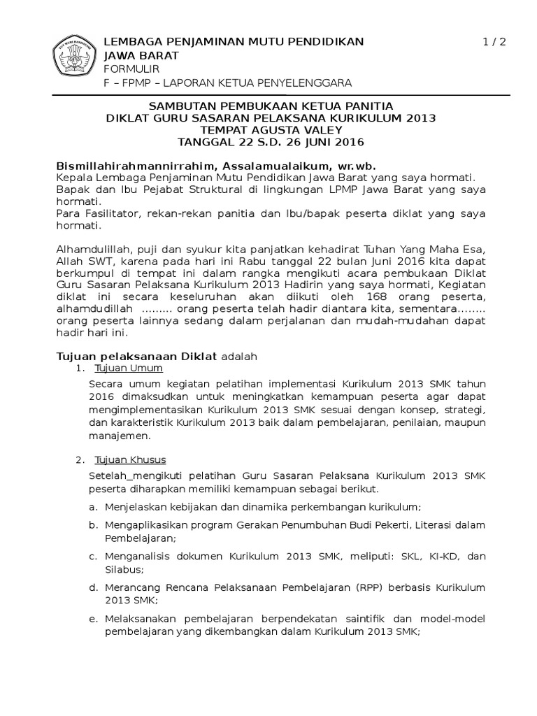 DOC) Contoh Kata Sambutan Ketua Panitia | ari bukhari - Academia.edu