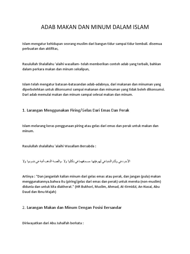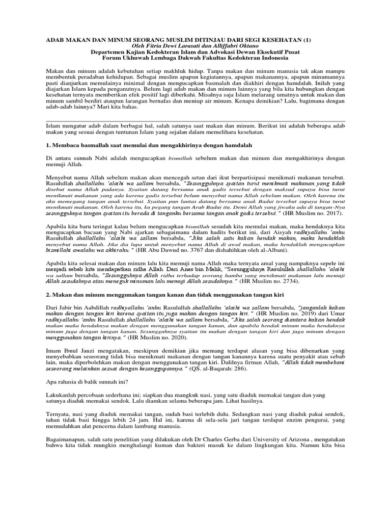 DOC) ADAB MAKAN DAN MINUM DALAM AJARAN AGAMA ISLAM | Destia Maulida - Academia.edu