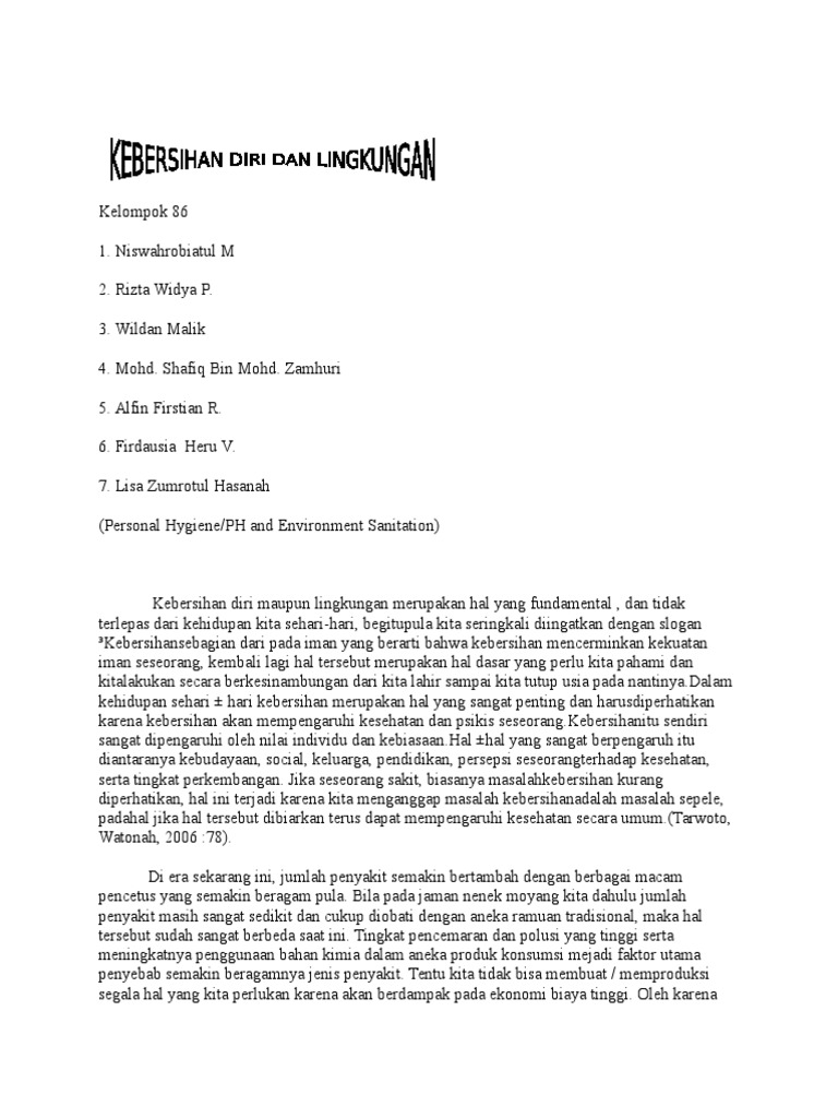 DOC) Makalah Kebersihan lingkungan sekitar | ahmad ripai - Academia.edu