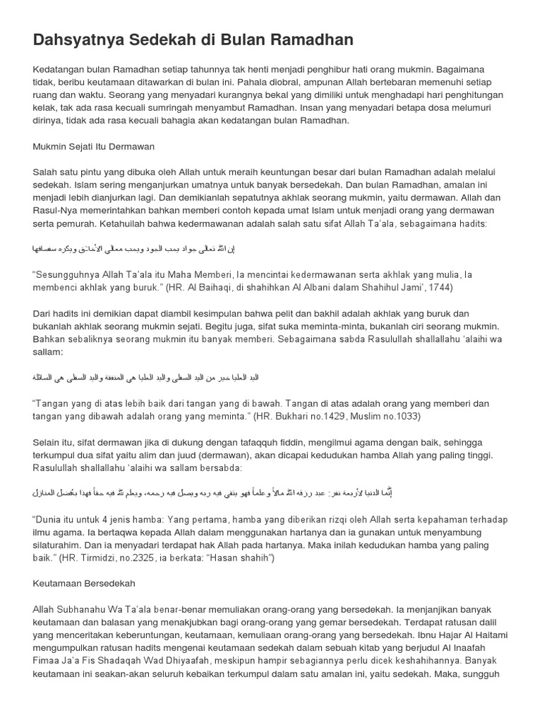 Dahsyatnya Sedekah Di Bulan Ramadhan