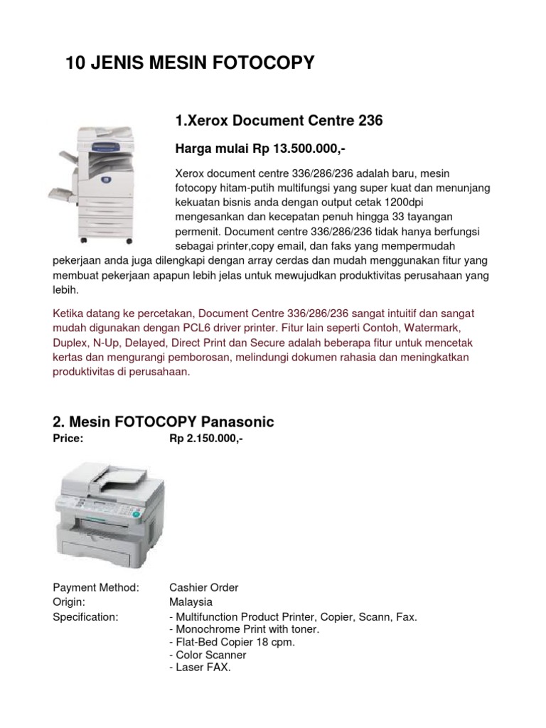 10 Jenis Mesin Foto Copy Beserta Harganya