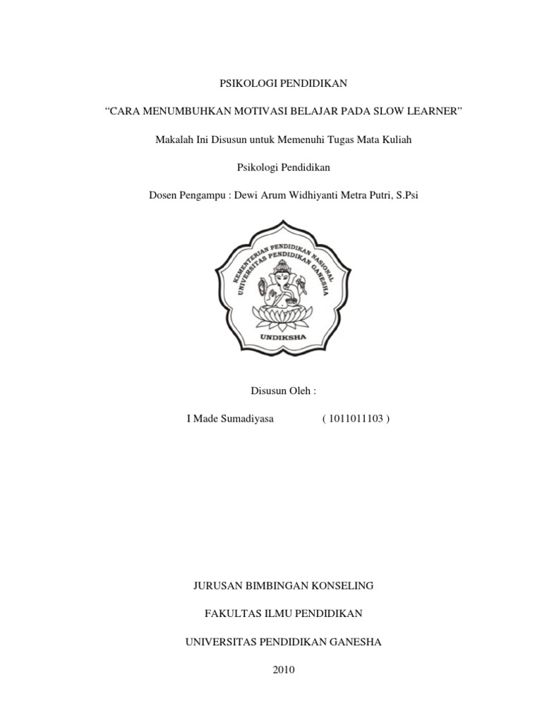 Tugas Makalah Cara Menumbuhkan Motivasi Belajar pada Slow Learner Psikologi Pendidikan